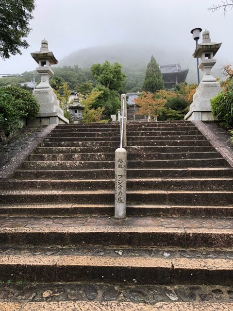 神呪寺は家業繫栄や商売繫盛のご利益があるとされる「融通観音」を本尊とするお寺です。90段の石段を上り本堂へ、参拝のあと展望台へ、ここからは京都方面から大阪、神戸まで一望できるのですが、あいにくの天候のためほとんど見ることが出来ませんでした。