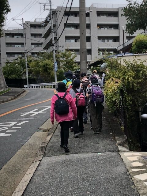 参拝のあとピクニックロードを仁川駅に向かって「甲山自然の家」「五ケ池」と下り道を歩き仁川の住宅街に入ってさらに急坂を下りて川に沿って阪急「仁川駅」まで歩き仁川駅で3時過ぎ解散しました。歩数計は22,000歩でした。